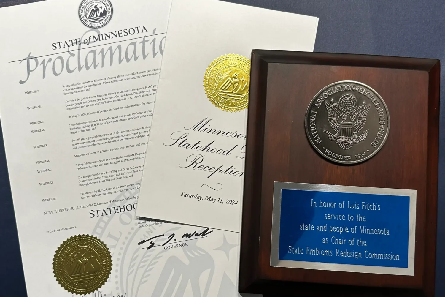 Luis Fitch has been awarded the National Association of Secretaries of State (NASS) Medallion Award in recognition of his exceptional service as Chair of the Minnesota State Emblems Redesign Commission. In this role, Fitch led the historic effort to redesign the state flag and seal—an initiative rooted in inclusion, civic engagement, and community representation.